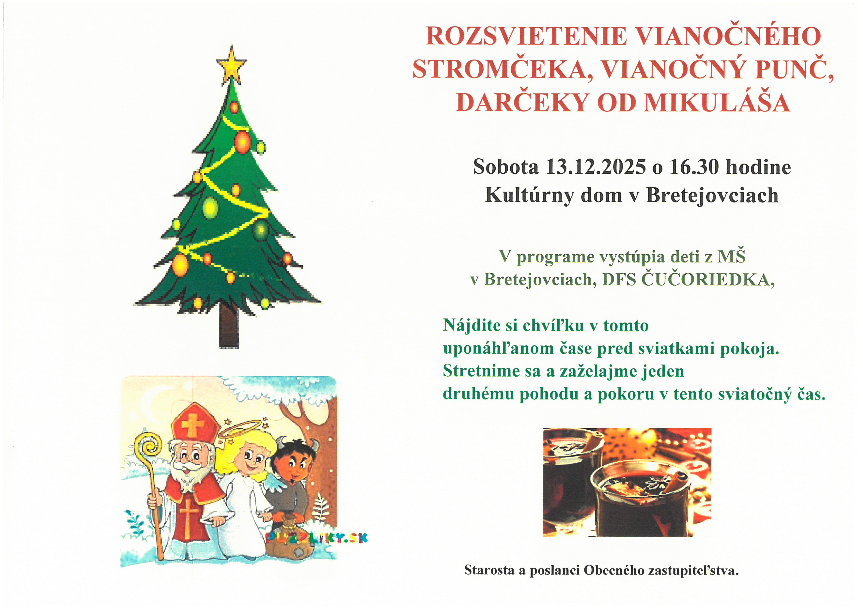 Pozvánka na Rozsvietenie vianočného stromčeka a Mikuláša