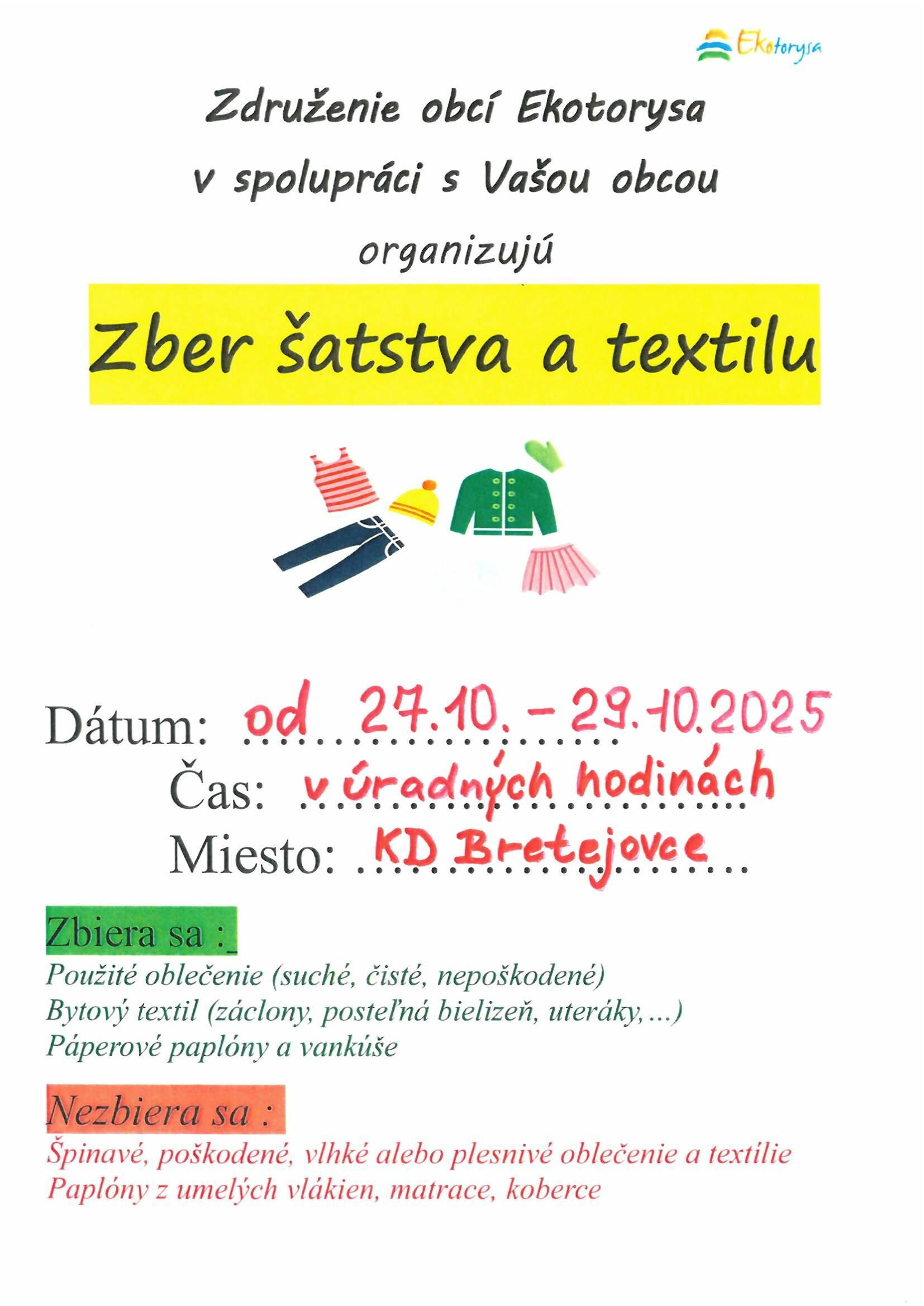 Zber šatstva a textilu od 27.10. - 29.10.2025